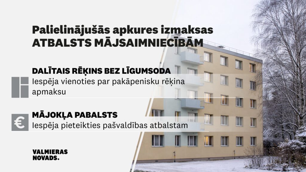 2026. gada janvāris ir bijis viens no aukstākajiem pēdējo gadu laikā, un līdz ar to daudziem Valmieras novada iedzīvotājiem būtiski palielinājušies apkures un citi mājokļa uzturēšanas izdevumi. Šie izdevumi nereti samazina ienākumus, kas nepieciešami ikdienas pamatvajadzību nodrošināšanai. Valmieras novada pašvaldība aicina iedzīvotājus, izmantot iespējas – vienoties par pakāpenisku rēķina apmaksu vai konsultēties par iespēju mājokļa pabalsta saņemšanai.