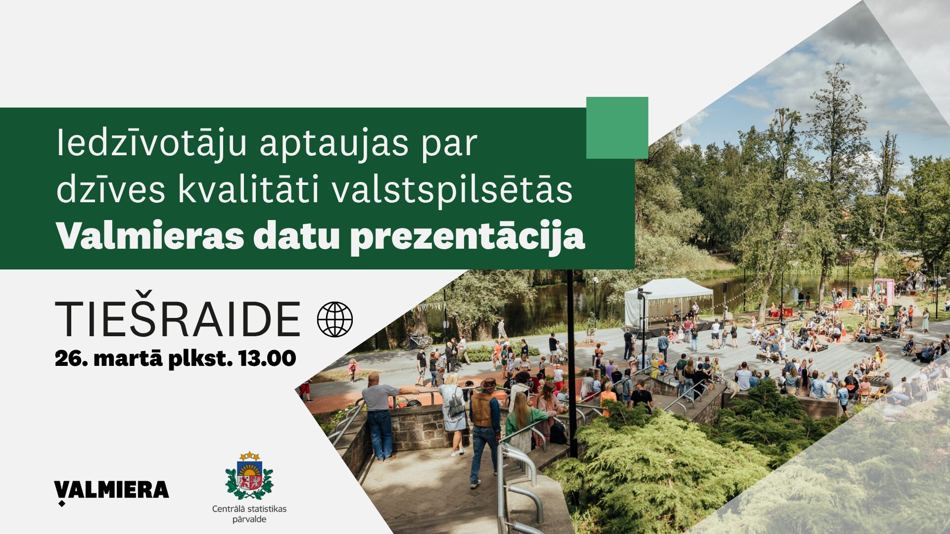 “Dzīves kvalitāte valstspilsētās” Valmieras iedzīvotāju aptaujas rezultātu prezentācijas TIEŠRAIDE