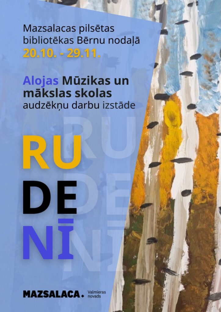 No 20. oktobra līdz 29. novembrim Mazsalacas pilsētas bibliotēkas Bērnu nodaļā Alojas Mūzikas un mākslas skolas audzēkņu darbu izstāde “Rudenī”.