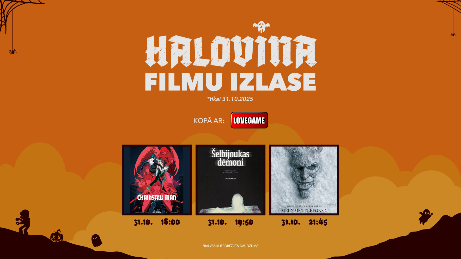Būūū! Halovīna izlase un laimīgais krēsls kino “Gaisma” gaida tieši tevi! Nāc uz īpašu Halovīna filmu izlasi 31.oktobrī un, iespējams, tieši tu būsi laimīgais, kas savā īpašumā iegūs tematisku pārsteigumu no videospēļu veikala Lovegame.lv!