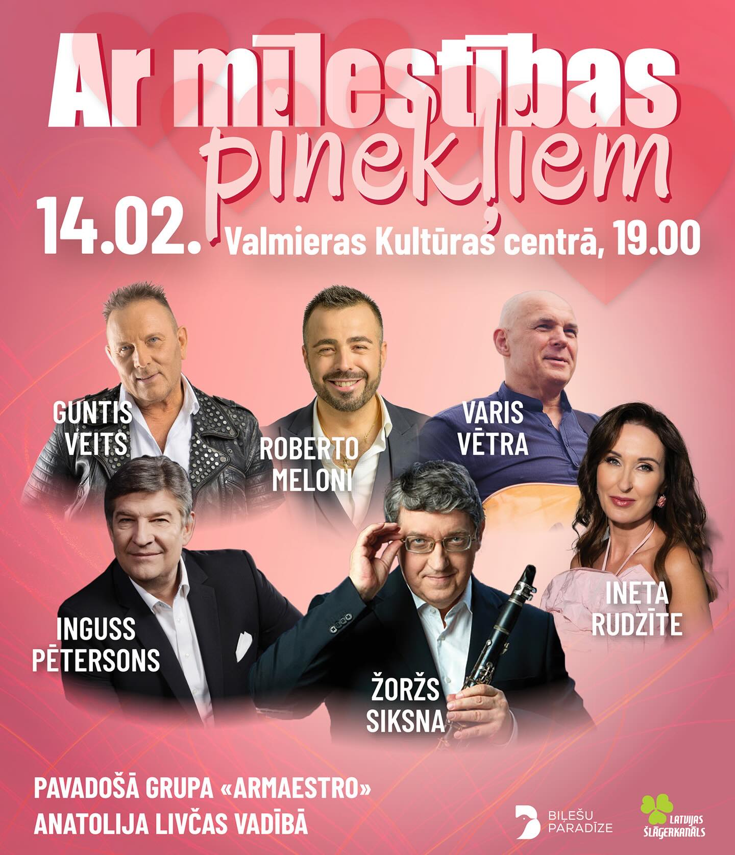 Aicinam ikvienu uz īpašu svētku koncertprogrammu “Ar mīlestības pinekļiem…”, kas būs muzikāls ceļojums mīlestības un romantikas pasaulē. Koncertā klausītāji varēs izbaudīt dažādu mūzikas žanru skaņas – no populārām mīlas balādēm latviešu un itāļu valodās līdz pat franču šansoniem.