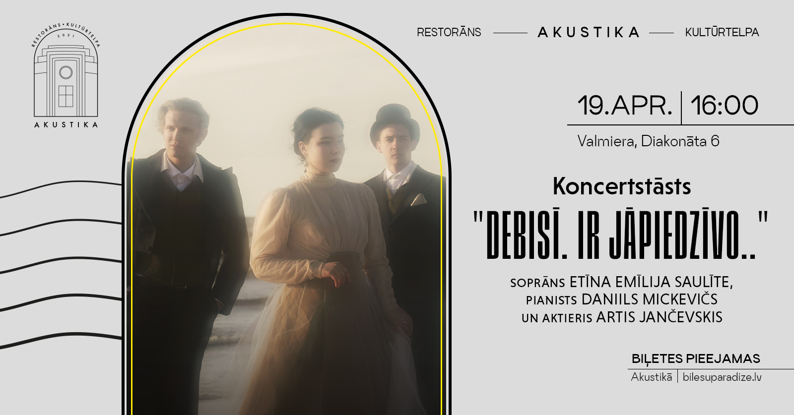 Biļetes pieejamas arī kultūrtelpā “Akustika”.