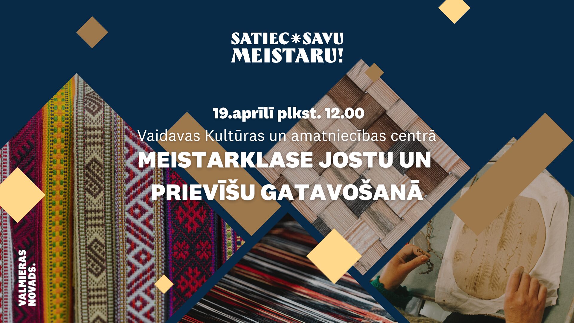 19. aprīlī plkst. 12.00 Vaidavas Kultūras un amatniecības centrā aicinām uz meistarklasi jostu un prievīšu aušanā