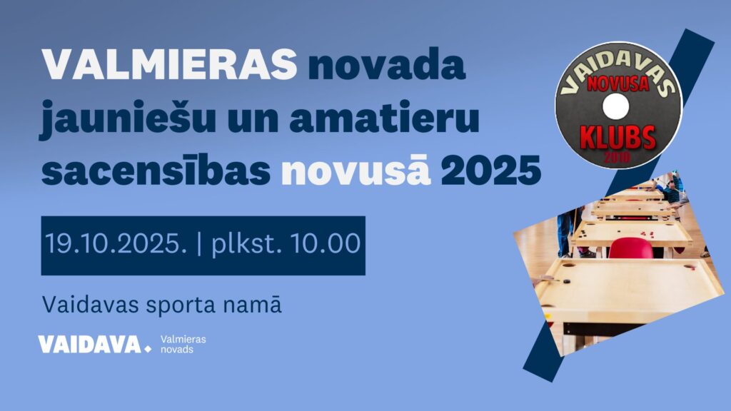 19. oktobrī plkst. 10.00 Vaidavas sporta centrā notiks Valmieras novada jauniešu un amatieru sacensības novusā 2025, kurā aicināti piedalīties ikviens novusa spēles cienītājs.