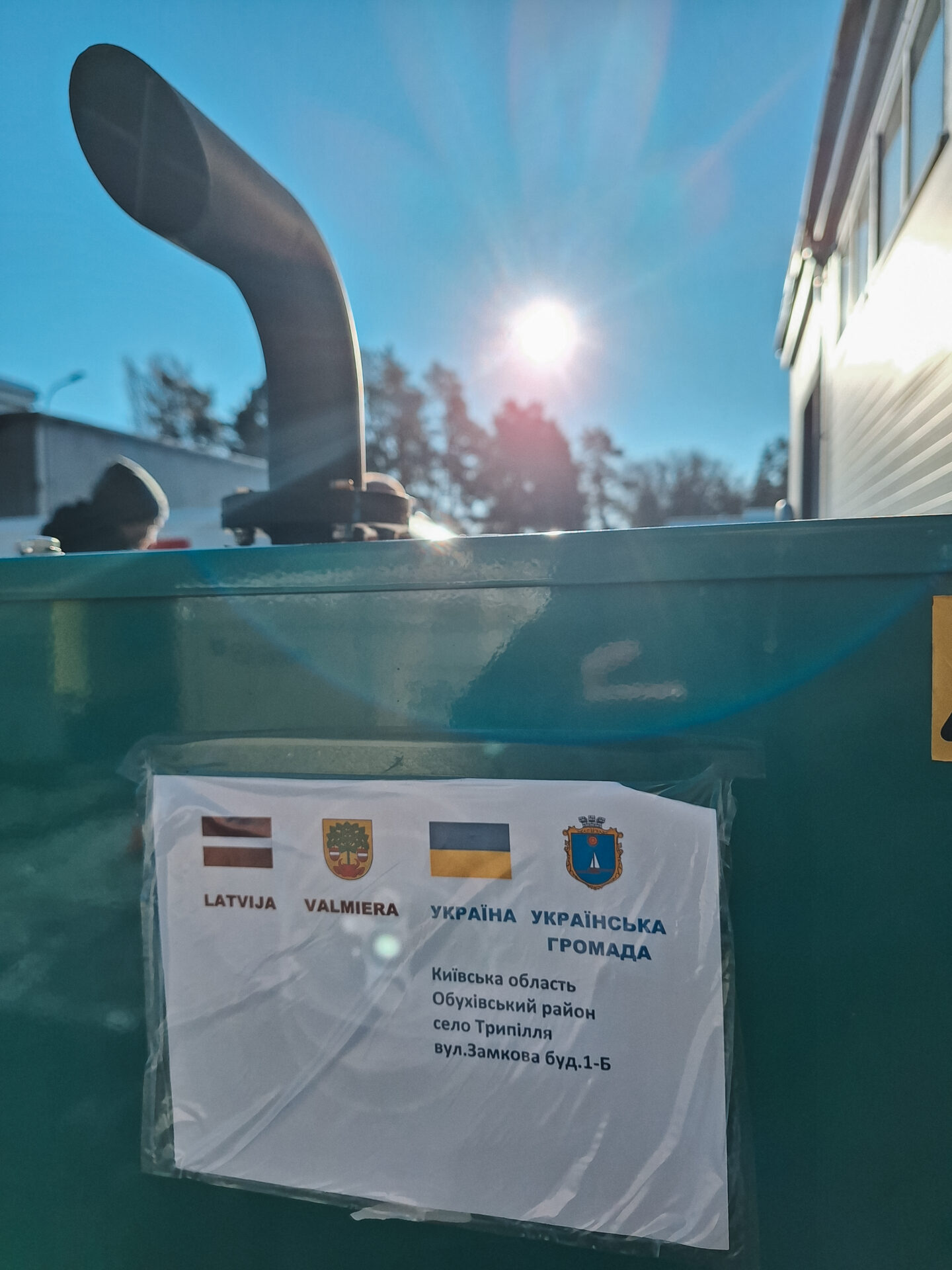 2. februārī Ukrainas Mazo pilsētu asociācijas pārstāvniecības Latvijas Republikā vadītāja Oksana Kiriļuka kopā ar Valmieras novada pašvaldības Nekustamā īpašuma apsaimniekošanas pārvaldes inženieri Aināru Skrastiņu devās saņemt iegādāto iekārtu un nodeva to organizācijai “Ziedot.lv”, kas sadarbībā ar Ukrainas vēstniecību Latvijā koordinē ģeneratora nogādāšanu galamērķī. Plānots, ka šīs nedēļas nogalē uz Ukrainu dosies kārtējais palīdzības konvojs. Lai gan tā galvenais mērķis ir Čerņihivas apgabals, pa ceļam konvojs piestās Kijivas apgabalā, lai nogādātu dāvinājumu Tripiļas izglītības un rehabilitācijas centram.