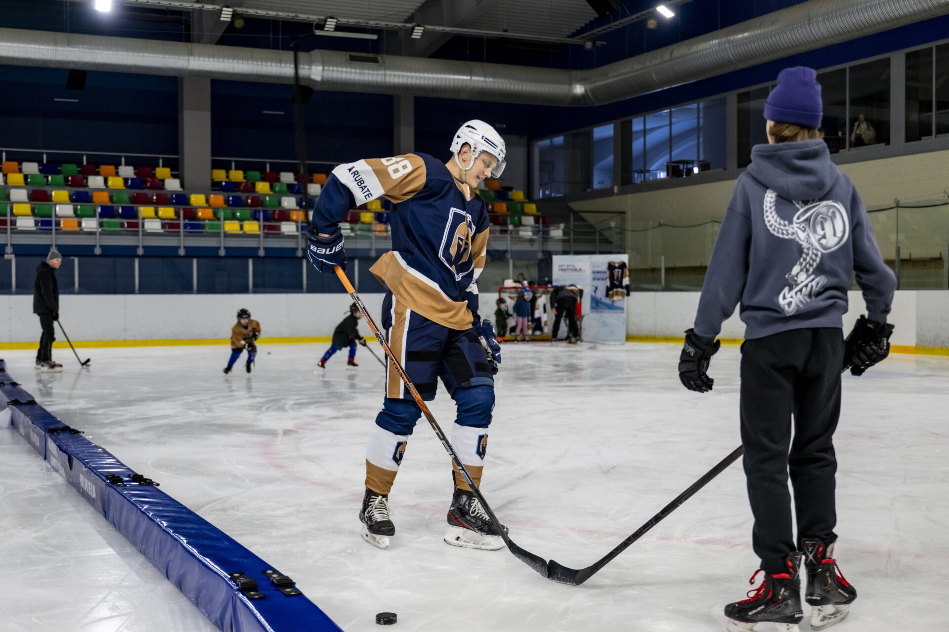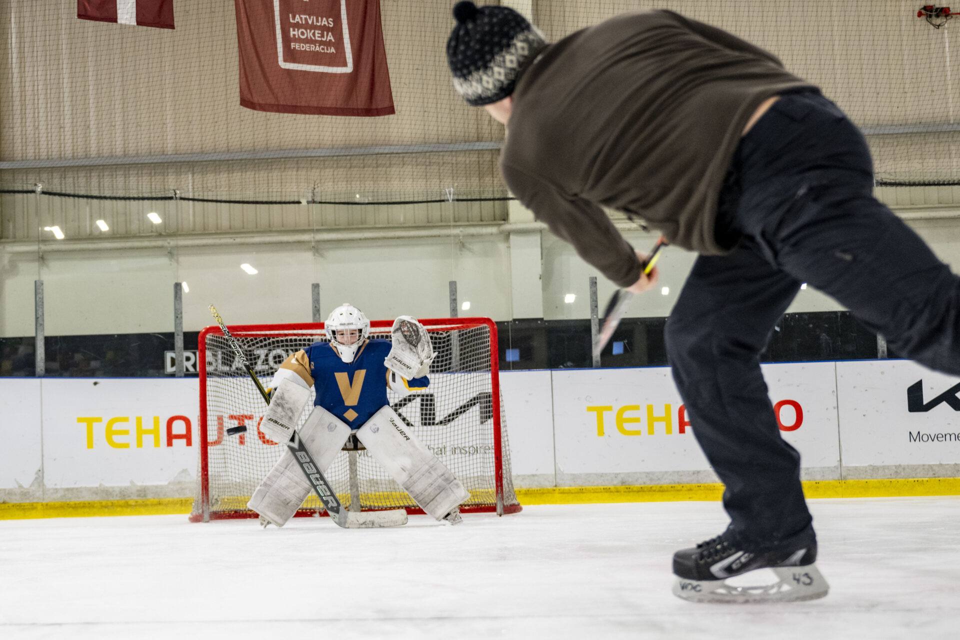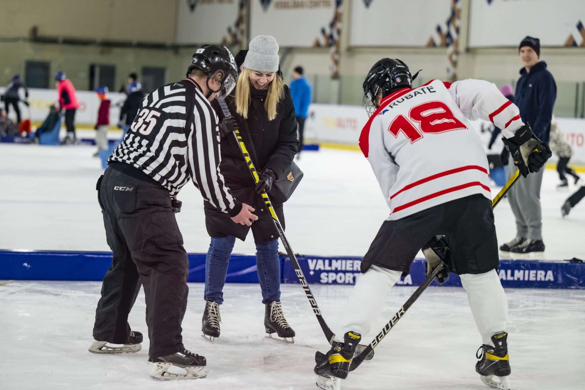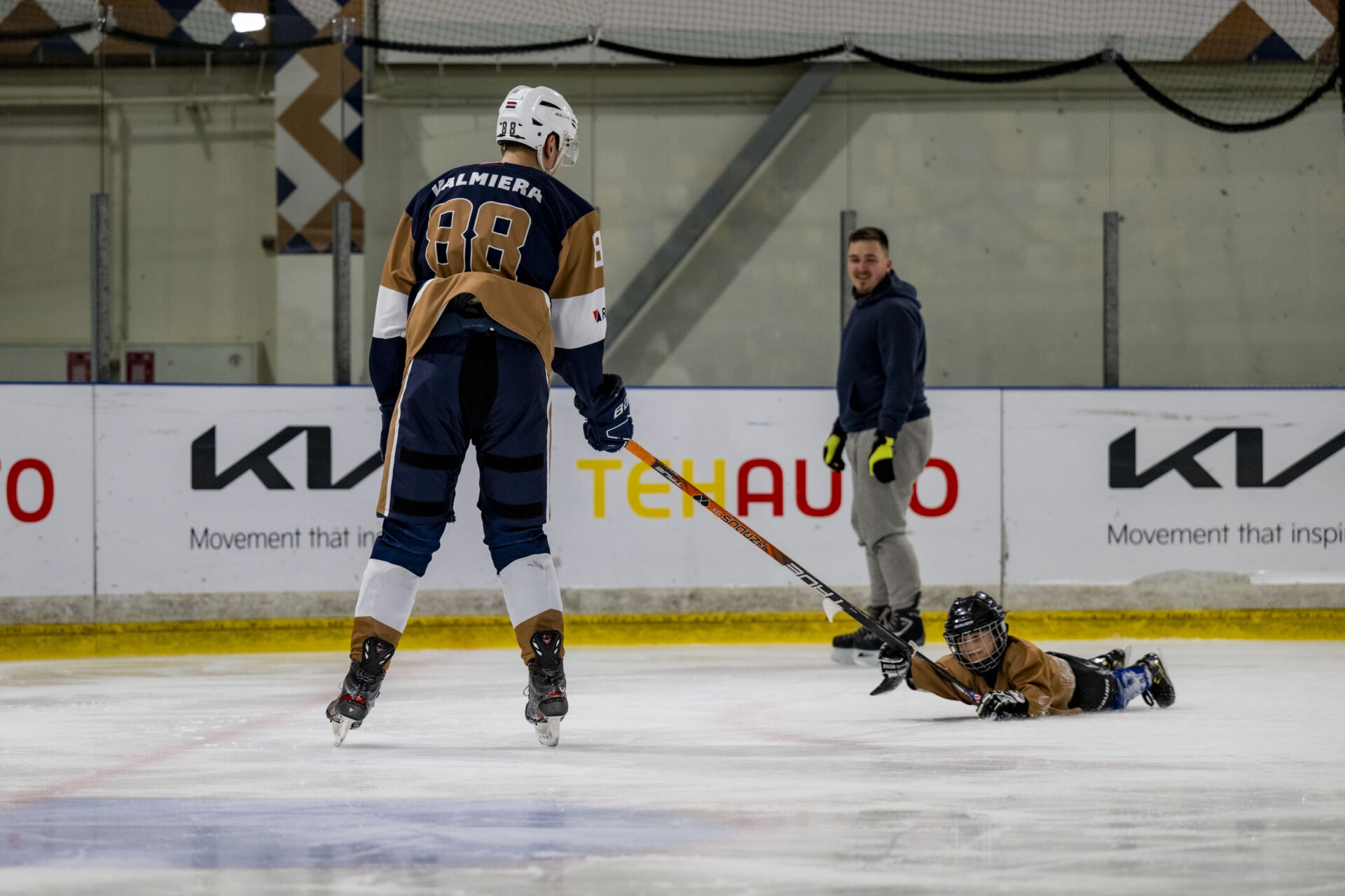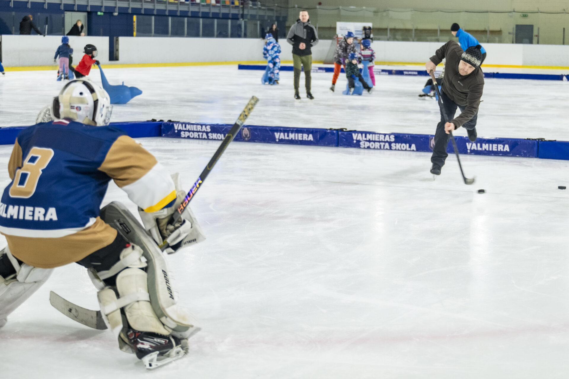 ija iespēja KIA Ledus hallē duelēties ar hokeja komandas “Valmiera” spēlētājiem – izmēģināt dažādas aktivitātes uz ledus un iepazīt hokeja spēles aizraujošo pasauli!