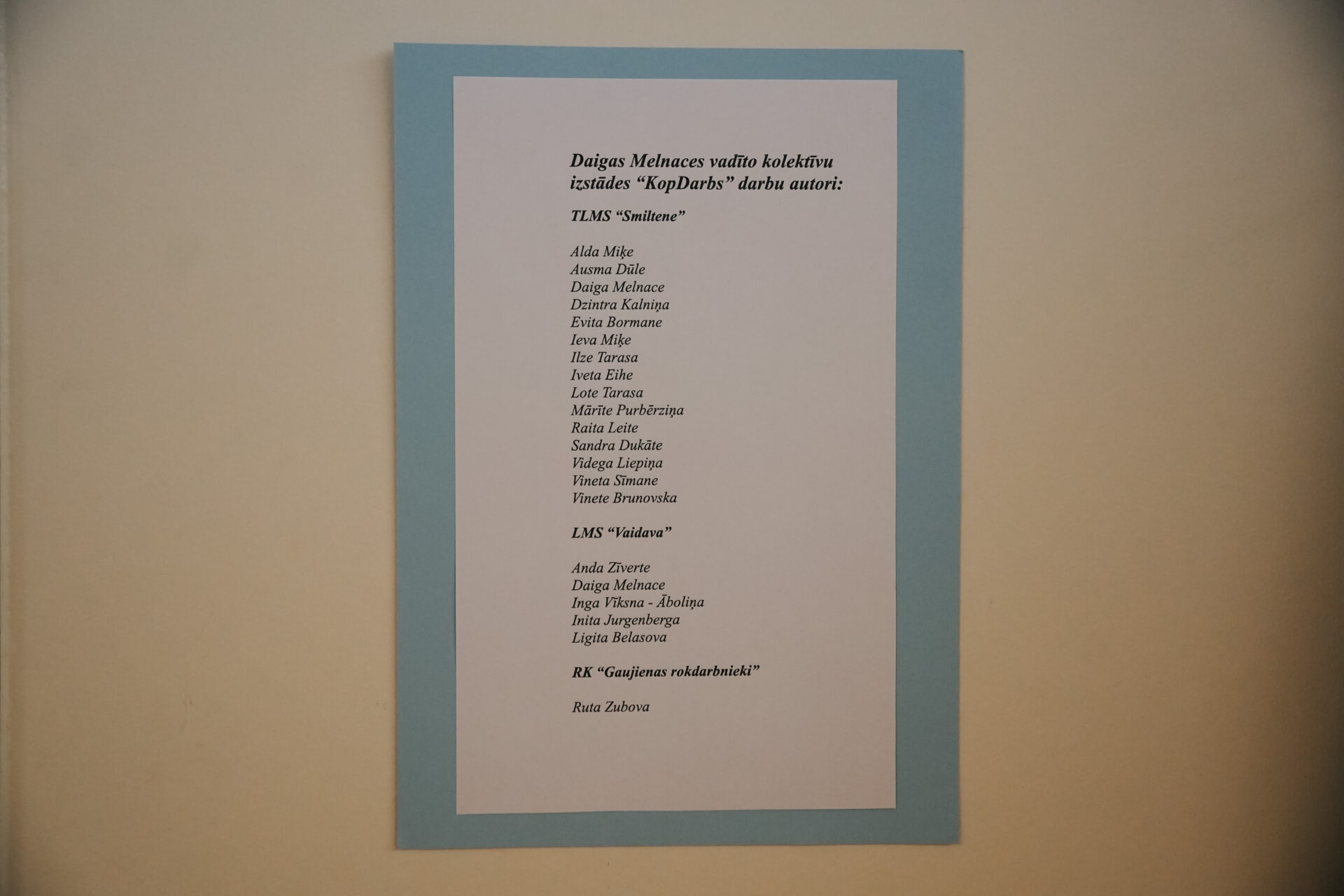 Vaidavas Kultūras un amatniecības centrā skatāma izstāde “Kopdarbs”. Piedalās TLMS “Smiltene”, LMS “Vaidava”, Gaujienas rokdarbnieču kopa. Studiju vadītāja Daiga Melnace.