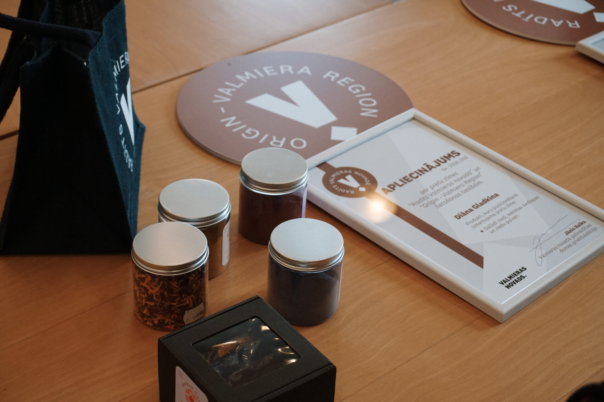 Lepojamies ar vēl diviem ražotājiem, kuri šodien saņēma preču zīmes “Radīts Valmieras novadā” lietošanas tiesības. Viena no tām ir Vineta Buile no Lodes pagasta, kura audzē rabarberus, otra – Diāna Gladkina no Ķoņu pagasta, kura ražo unikālu produktu – kaltētus ziedus, ziedlapas un ziedu pulverus.