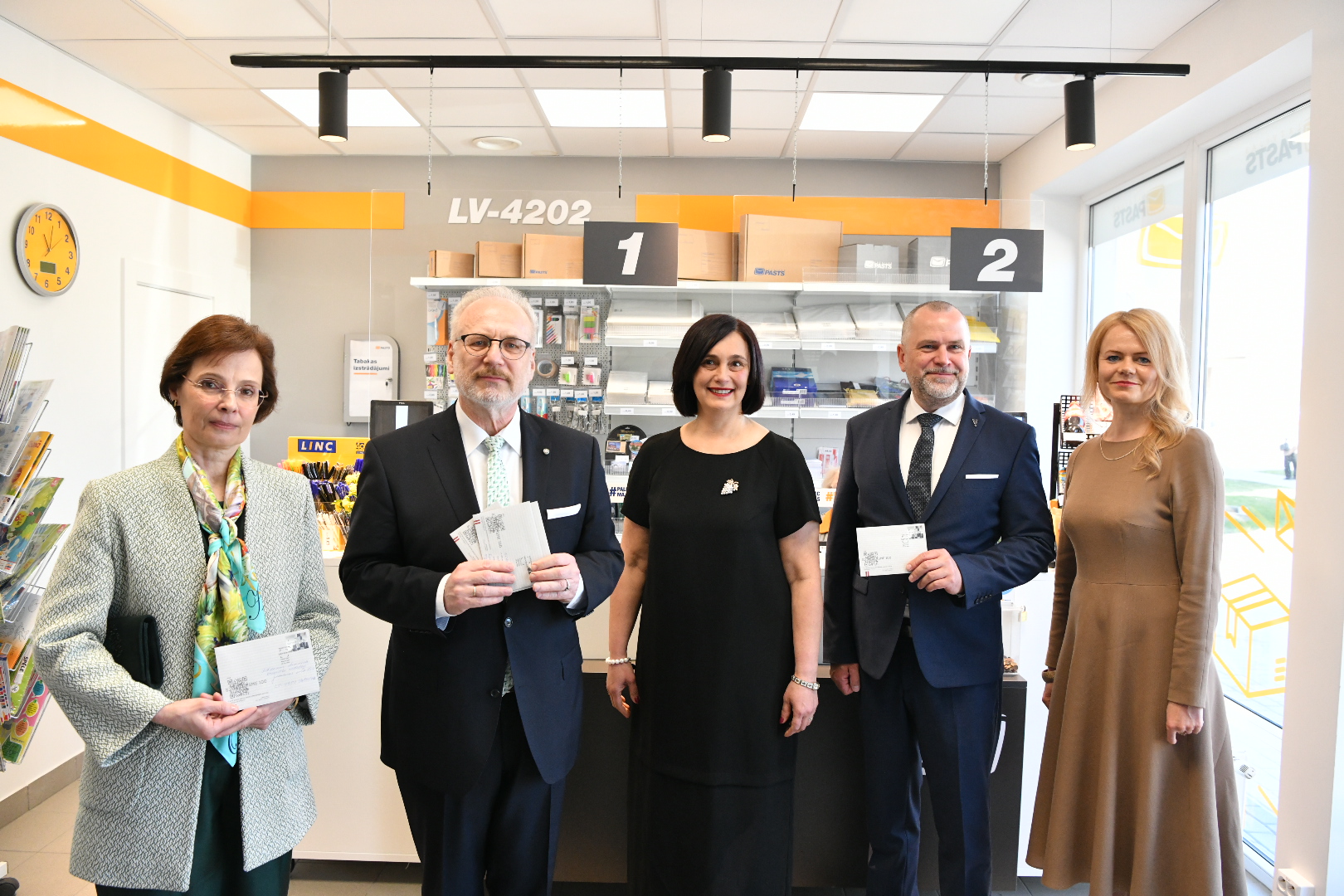 Aktualitātes / Galerijas / Valsts prezidents un Andra Levites kundze nosūta īpašo Satversmes simtgadei veltīto pastkarti un pastmarku