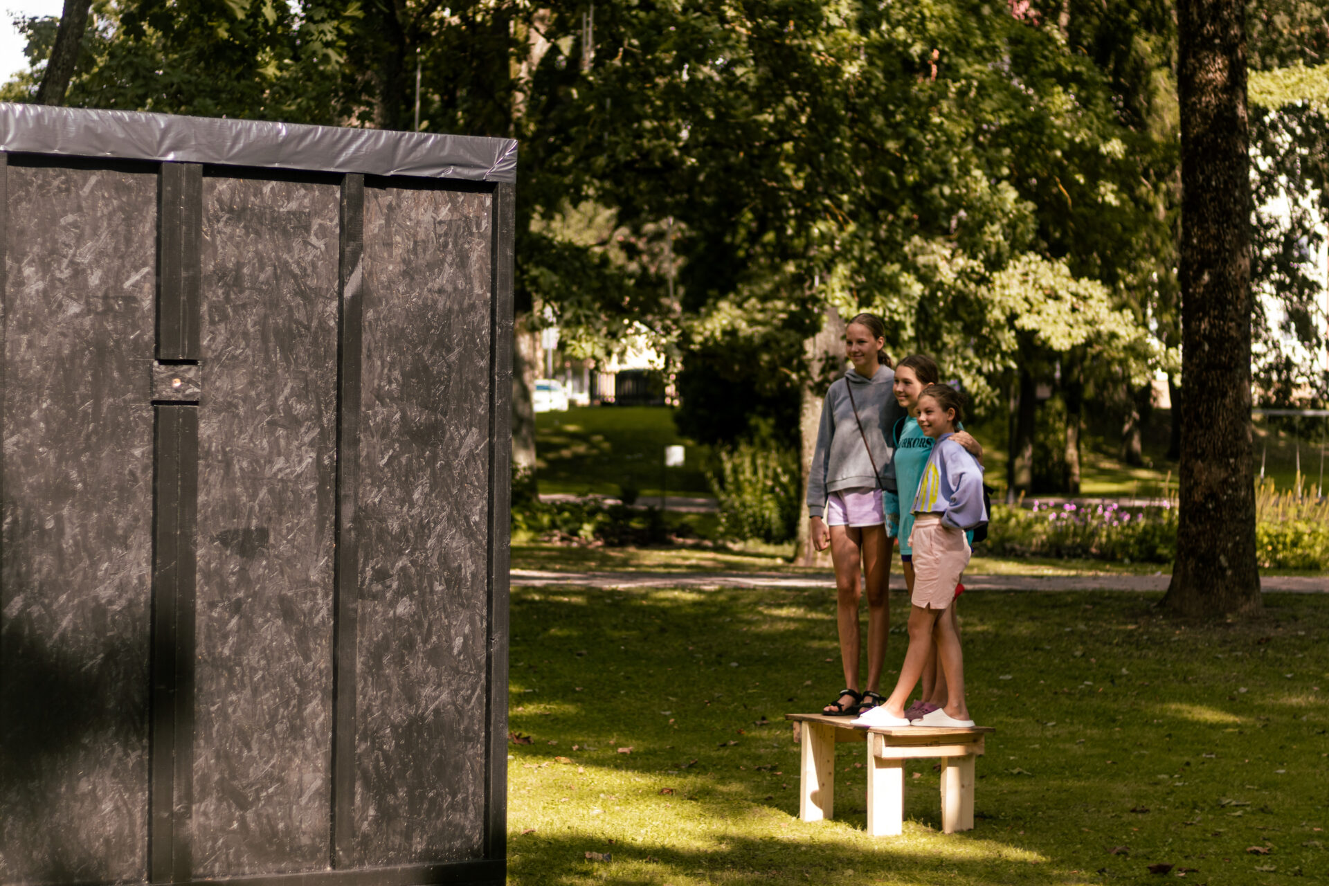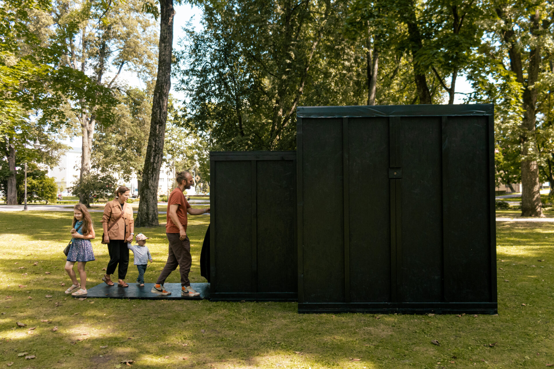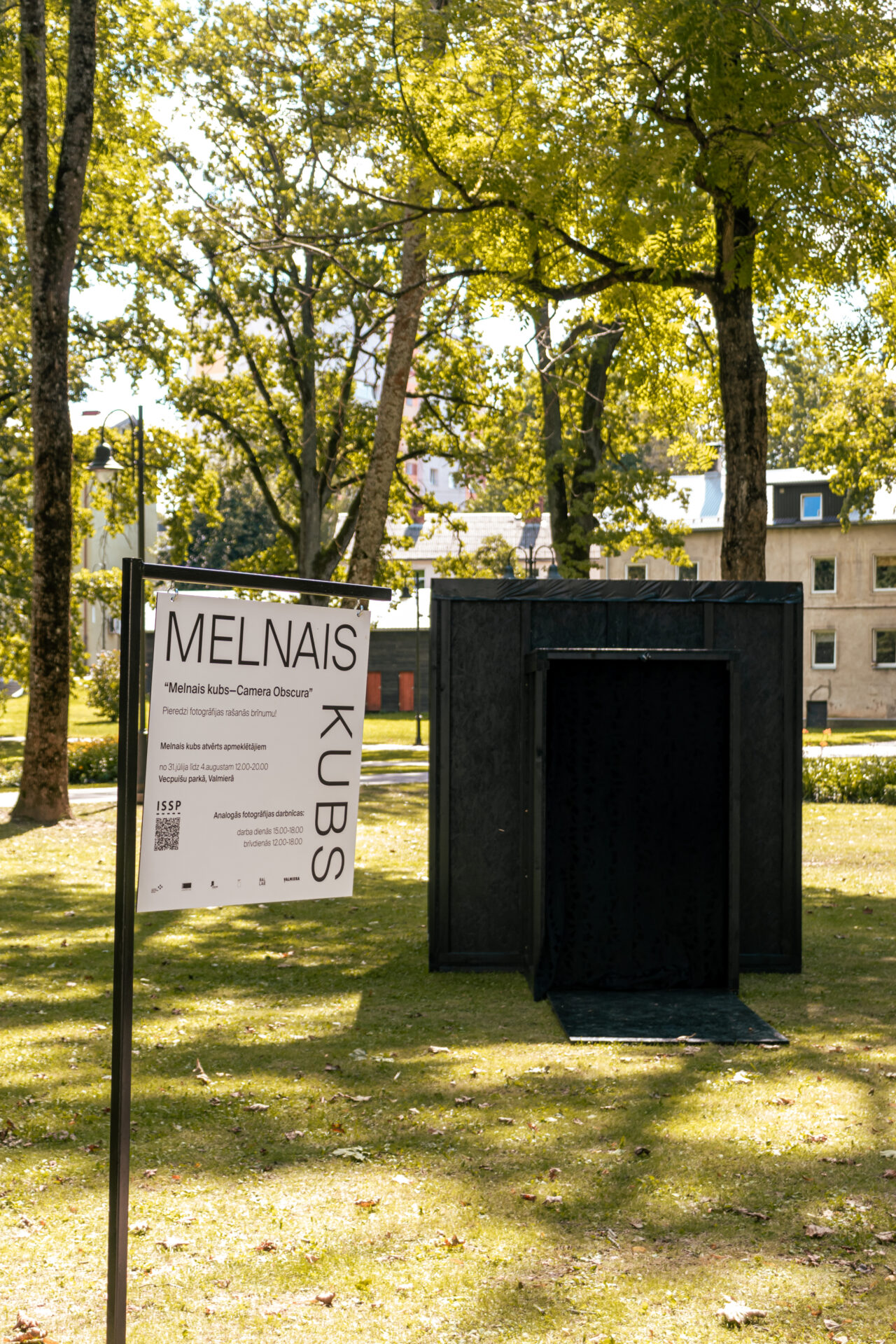 Vecpuišu parkā ikviens bija aicināts apskatīt laikmetīgās fotogrāfijas, mākslas un izglītības platformas ISSP veidoto vides objektu “Melnais kubs – Camera Obscura” un piedalīties radošajās meistarklasēs.