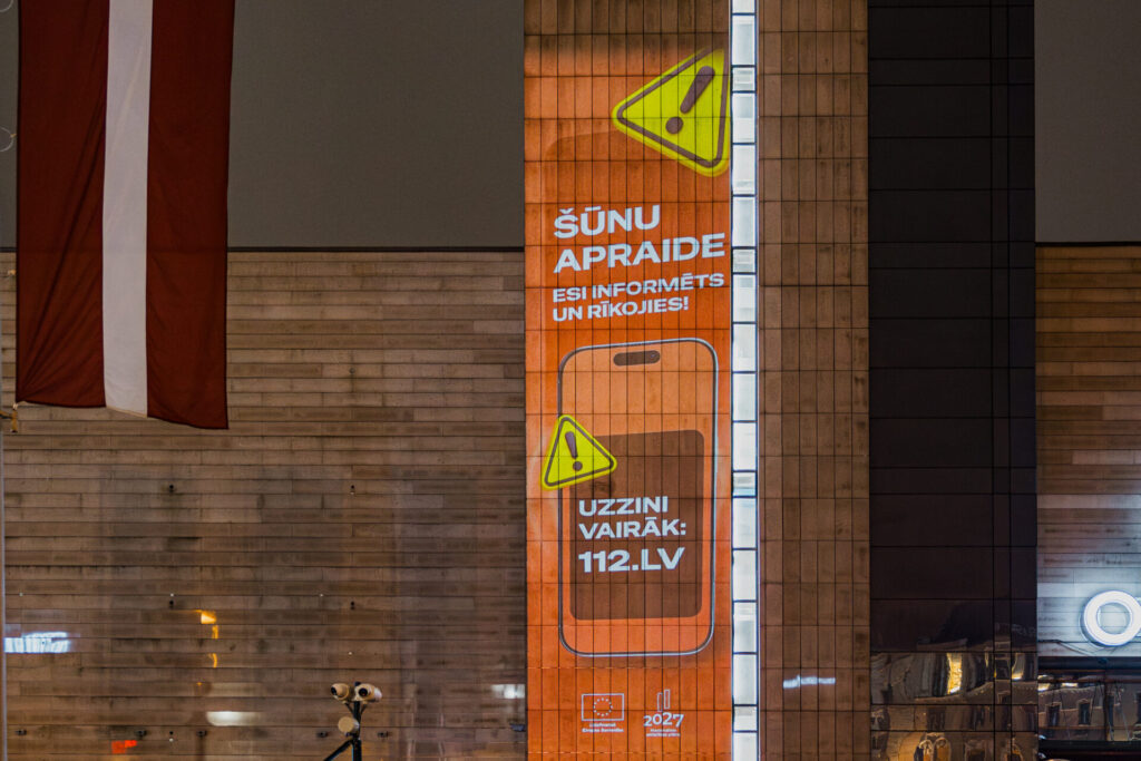 Lai iedzīvotāji apdraudējumos varētu saņemt operatīvu informāciju par to, kas noticis, notiks un kā rīkoties, šogad Latvijā ieviesta šūnu apraides sistēma. No 12. novembra Iekšlietu ministrija kopā ar Valsts ugunsdzēsības un glābšanas dienestu (VUGD) uzsāk sabiedrības informēšanas kampaņu “Šūnu apraide – esi informēts un rīkojies!”, kuras laikā skaidros, kas ir šūnu apraide, kā tā darbojas un kā skars ikvienu Latvijas iedzīvotāju. Par to, ka kritiskā situācijā, saņemot šūnu apraides paziņojumu, ir jārīkojas nekavējoties, Rīgā atgādinās arī īpašs gaismas objekts uz Stacijas pulksteņa torņa pie tirdzniecības centra “Origo”.