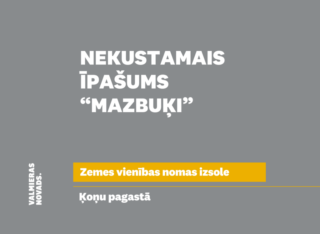 Valmieras novada pašvaldība izsludina pirmo mutisko nomas tiesību izsoli uz izsoles objektu – nekustamā īpašuma “Mazbuķi” (kadastra Nr.9666 001 0123), Ķoņu pagastā, Valmiera novadā, sastāvā esošās zemes vienības ar kadastra apzīmējumu 9666 001 0123, 3,1 ha platībā.
