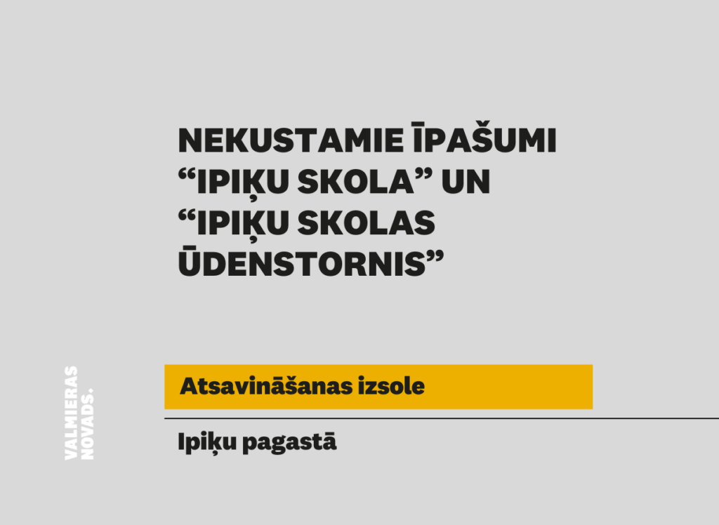 • “Ipiķu skola”, Ipiķu pagastā, Valmieras novadā, kadastra Nr. 9656 002 0062, kas sastāv no zemes vienības 2,03 ha platībā ar kadastra apzīmējumu 9656 002 0062 un būves ar kadastra apzīmējumu 9656 002 0062 001;