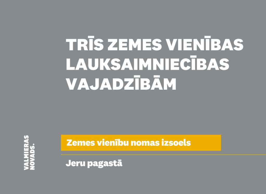 Valmieras novada pašvaldība izsludina pirmo mutisko nomas tiesību izsoli uz izsoles objektu – trīs zemes vienībām Jeru pagastā, Valmieras novadā, kadastra apzīmējumi 9658 004 0372, 9658 004 0386, 9658 004 0385.