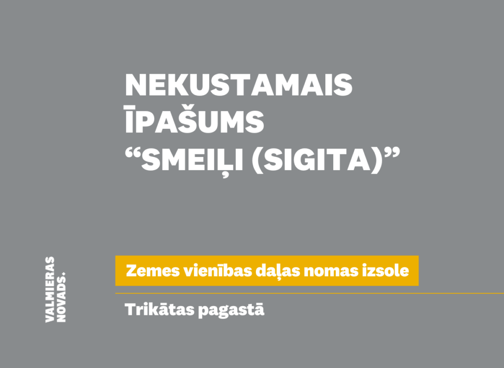 Valmieras novada pašvaldība izsludina pirmo mutisko nomas tiesību izsoli uz izsoles objektu – zemes vienību “Smeiļi (Sigita)” daļa, Trikātas pagastā, Valmieras novadā.