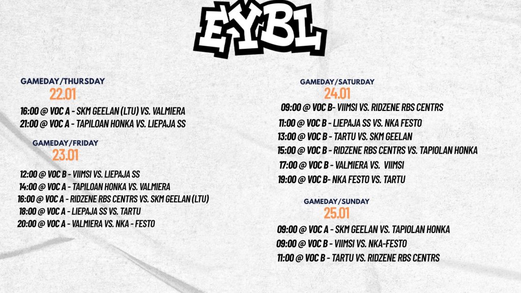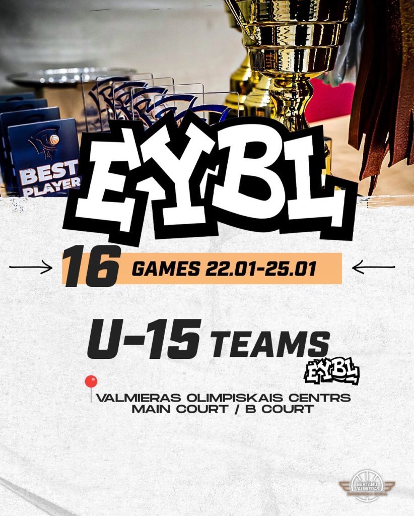 No 2026. gada 22. līdz 25. janvārim Valmieras Olimpiskais centrs kļūs par Eiropas jaunatnes basketbola epicentru, uzņemot Eiropas Jaunatnes basketbola līgas (EYBL) U15 vecuma grupas II posma turnīru.