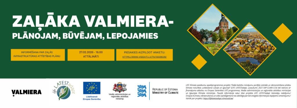 “Zaļāka Valmiera – plānojam, būvējam, lepojamies” būs Valmieras pieredzes stāsts par zaļās infrastruktūras risinājumiem – nākamo līmeni pilsētplānošanā. Ilgtspējīga, iedzīvotājiem un dabai draudzīga pilsētplānošanas pieeja nozīmē pāreju no konvencionāliem uz dabā balstītiem risinājumiem. Kā to Valmierā īsteno Valmieras novada pašvaldība, būs iespēja uzzināt 27. februārī plkst. 16.00 tiešsaistes seminārā.