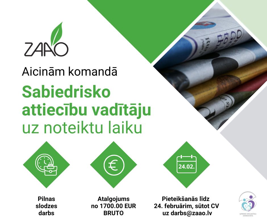 SIA “ZAAO” aicina darbā sabiedrisko attiecību vadītāju (uz noteiktu laiku)