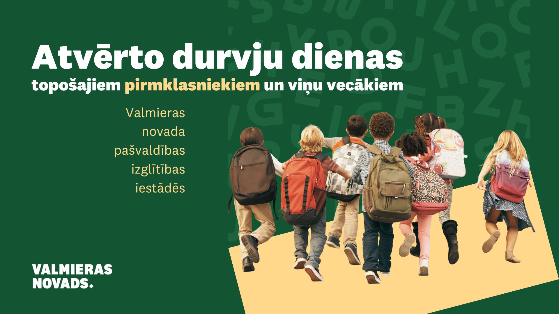 Gatavojoties 2026./2027. mācību gadam, Valmieras novada pašvaldības dibinātās izglītības iestādes organizēs Atvērto durvju dienas, lai iepazīstinātu topošos pirmklasniekus un viņu vecākus ar skolas piedāvātajām iespējām. Atvērto durvju dienas 2026. gadā…