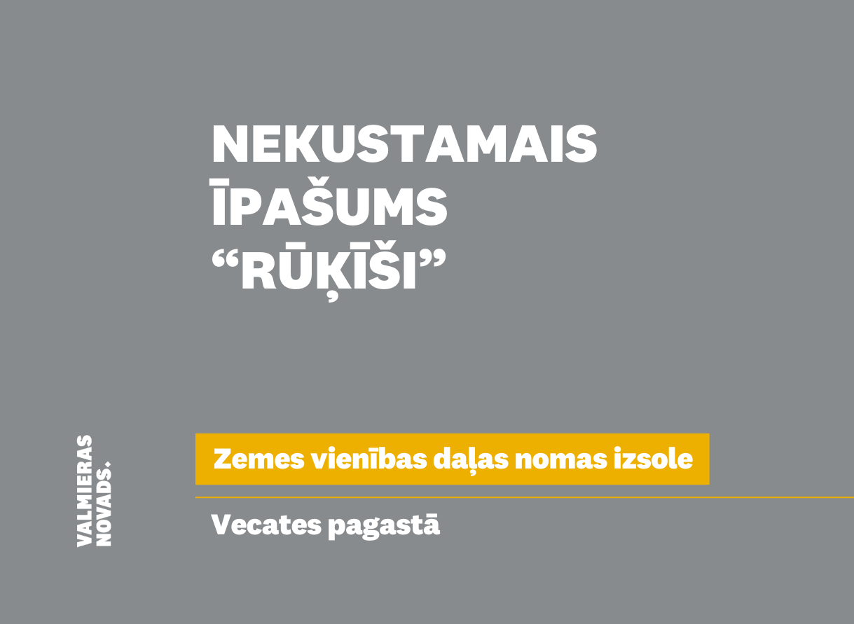 Valmieras novada pašvaldība izsludina nekustamā īpašuma “Rūķīši”, Vecates pagasts, Valmieras novads sastāvā esošas zemes vienības daļas, pirmo mutisko nomas tiesību izsoli Izsoles objekts – nekustamā īpašuma “Rūķīši”, Vecates pagasts, Valmieras…