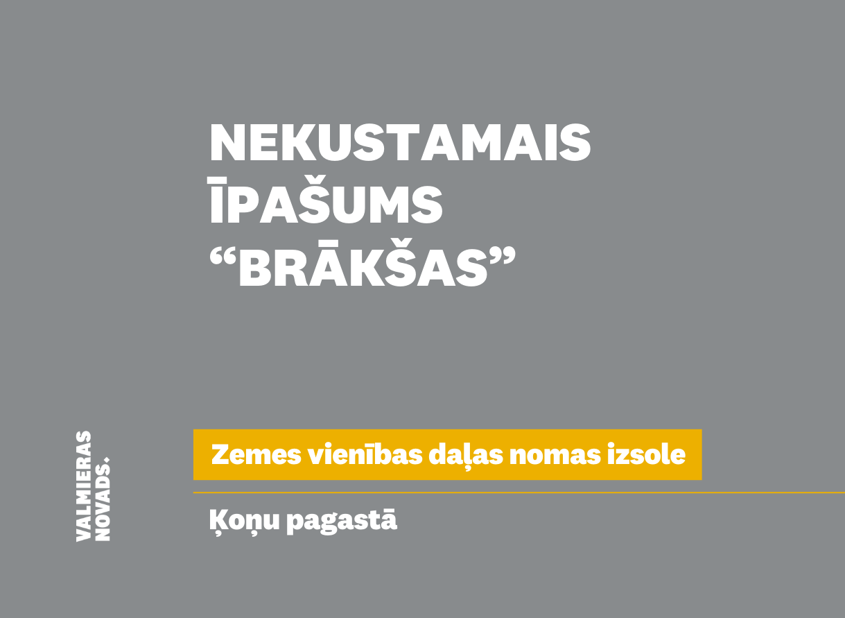 Valmieras novada pašvaldība izsludina nekustamā īpašuma “Brākšas”, Ķoņu pagastā, Valmieras novadā, sastāvā esošās zemes vienības ceturto mutisko nomas tiesību izsoli. Izsoles objekts – nekustamā īpašuma “Brākšas” (kadastra Nr.9666 0040 290),…