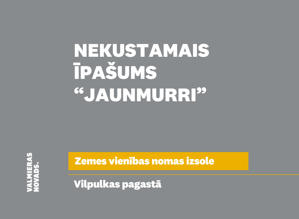 Valmieras novada pašvaldība izsludina nekustamā īpašuma “Jaunmurri”, Vilpulkas pagastā, Valmiera novadā, sastāvā esošas zemes vienības pirmo mutisko nomas tiesību izsoli Izsoles objekts – nekustamā īpašuma “Jaunmurri” (kadastra Nr.9694 001 0083),…