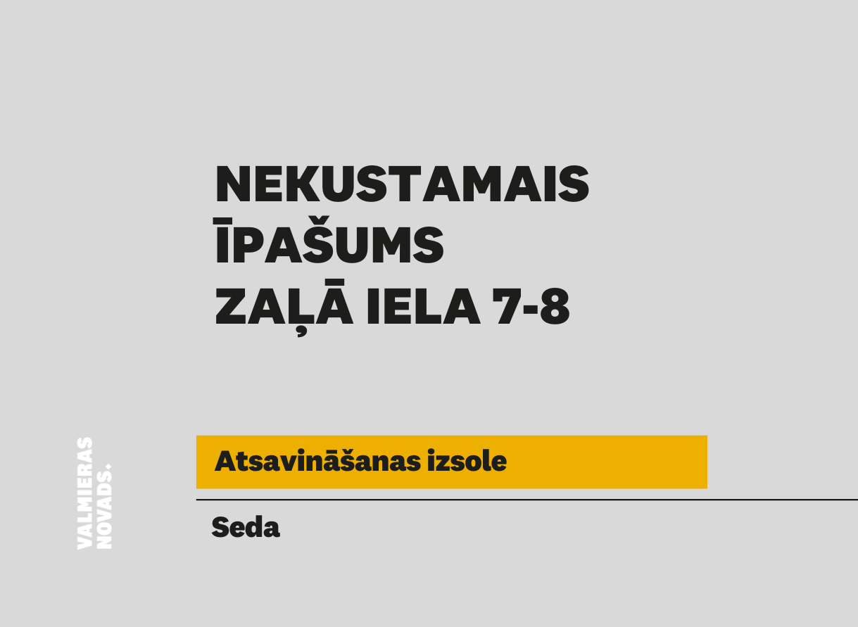 Valmieras novada pašvaldība rīko elektronisko izsoli ar augšupejošu soli dzīvokļa īpašumam Zaļā iela 7 - 8, Sedā, Valmieras novadā, kadastra numurs 9413 900 0369, kas sastāv no dzīvokļa ar kopējo…