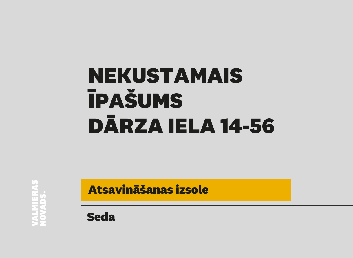 Valmieras novada pašvaldība rīko elektronisko izsoli ar augšupejošu soli dzīvokļa īpašumam Dārza iela 14 - 56, Sedā, Valmieras novadā, kadastra numurs 9413 900 0483, kas sastāv no dzīvokļa ar kopējo…