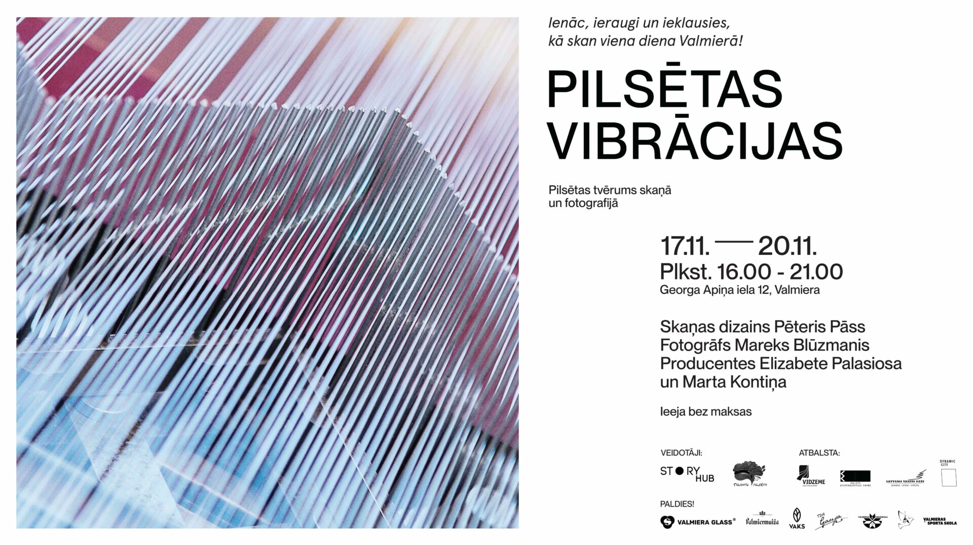 Projekta radošā komanda aicina ienākt, ieraudzīt un ieklausīties, kā skan viena parasta diena Valmierā. Valsts svētku noskaņās visu paaudžu Valmieras novada iedzīvotāji un viesi ir aicināti pārdomāt, kas veido pilsētu, kas padara to dzīvu un dinamisku, kā skan un izskatās pilsēta laikā, kad tās iedzīvotāji dodas ikdienas gaitās vai atpūšas nakts mierā. Telpiskās skaņas pieredze būs intīms skaņas piedzīvojums, kas atklās pilsētu dažādās noskaņās, bet foto fiksācijas portretēs mirkļus no dinamiskās pilsētas ikdienas. Dinamiskās skaņas ainavās varēs sadzirdēt dažādos pilsētas ritmus un motīvus, kas veido pilsētas iedzīvotāju attiecības ar dabu, industriju un ikdienas dzīvi.
