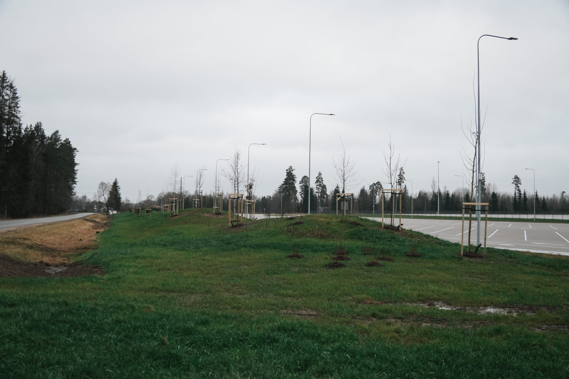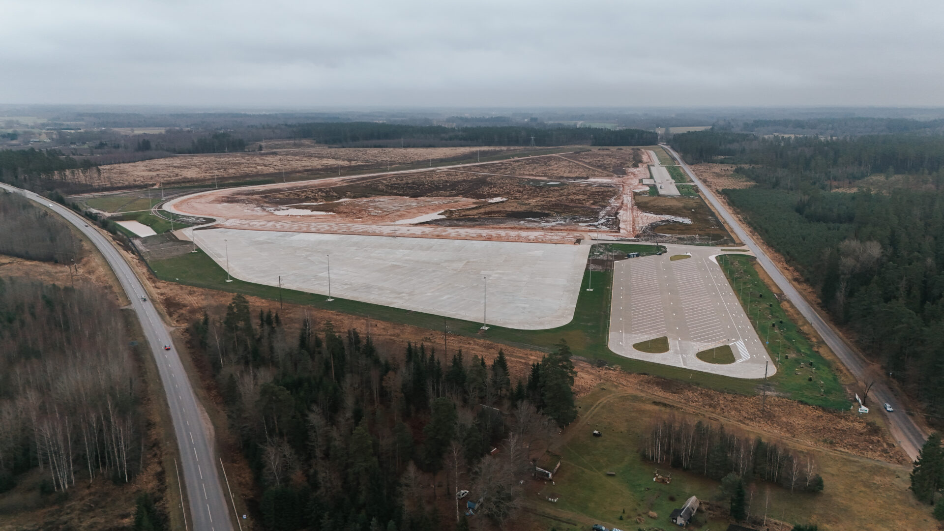 Izbūvēti apgaismoti stāvlaukumi. Viens kravas un vieglo transportlīdzekļu ilglaicīgai novietošanai un otrs publiskais stāvlaukums. Transportlīdzekļu pārvietošanos parka teritorijā nodrošina betonēts iekšējais ceļš. Visa parka infrastruktūra ir apgaismota un iežogota. Ierīkota arī zaļā infrastruktūra.