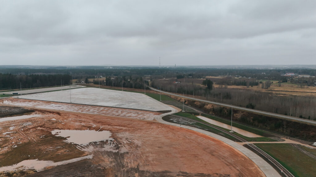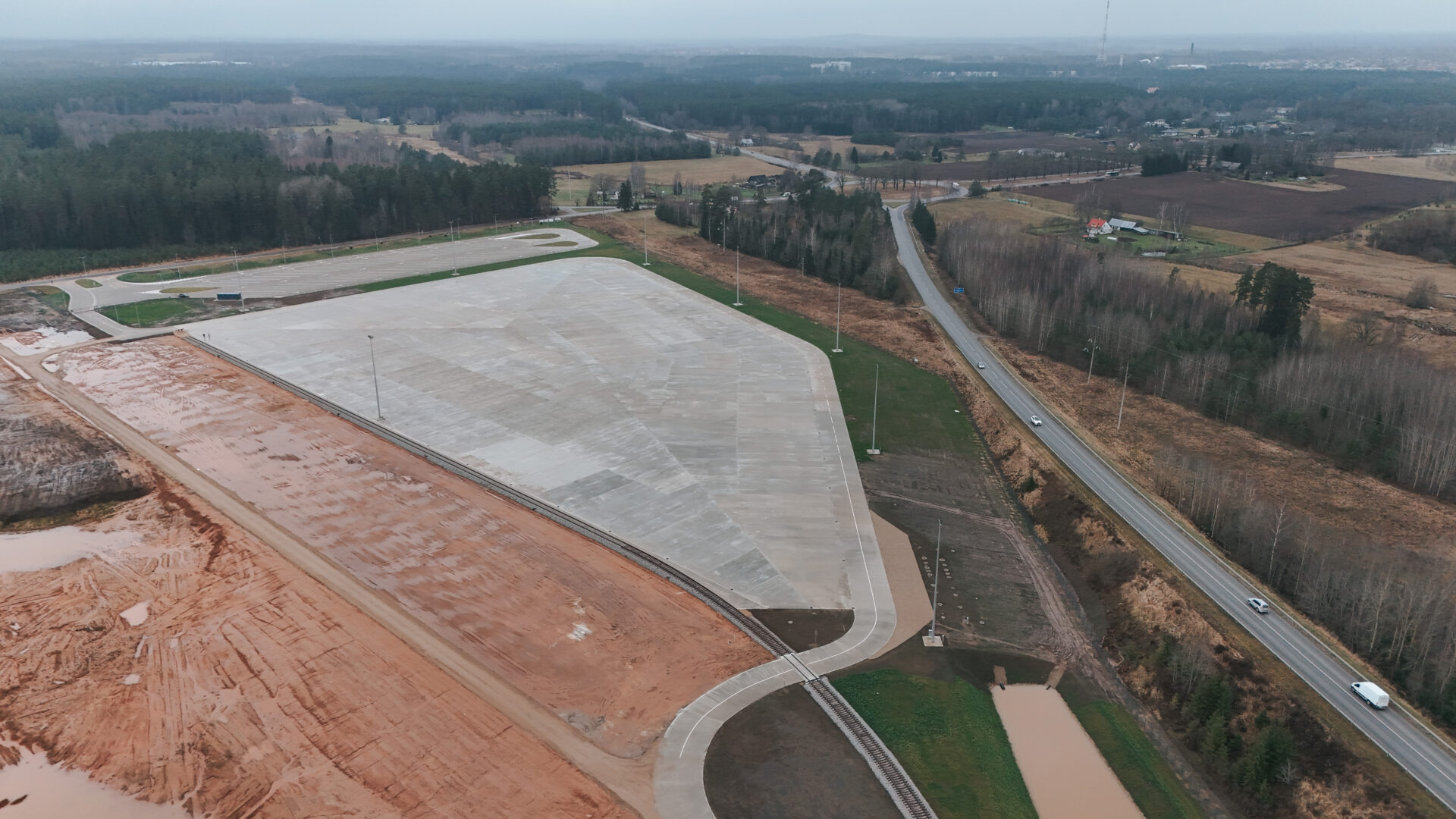 Dzelzceļš savienojas ar 4,6 ha plašo kravu iekraušanas/ izkraušanas (loģistikas) laukumu – paredzēts ass slodzei, kas atbilst 60 t/m2. Laukums paredzēts gatavās produkcijas novietošanai, materiālu novietnēm, kurās nav paredzēts glabāt ķīmiskas vai citādi kaitīgas vielas. Kravu pārkraušanu plānots nodrošināt ar dzelzceļa kravu pārkraušanai paredzētu celtni. Laukuma betonētais segums ļauj nodrošināt efektīvu kravu iekraušanu, izkraušanu, komplektēšanu un dažādu loģistikas pakalpojumu sniegšanu, kā arī organizēt centralizētu kravu pārvadājumu plūsmu no reģiona uz ostām.