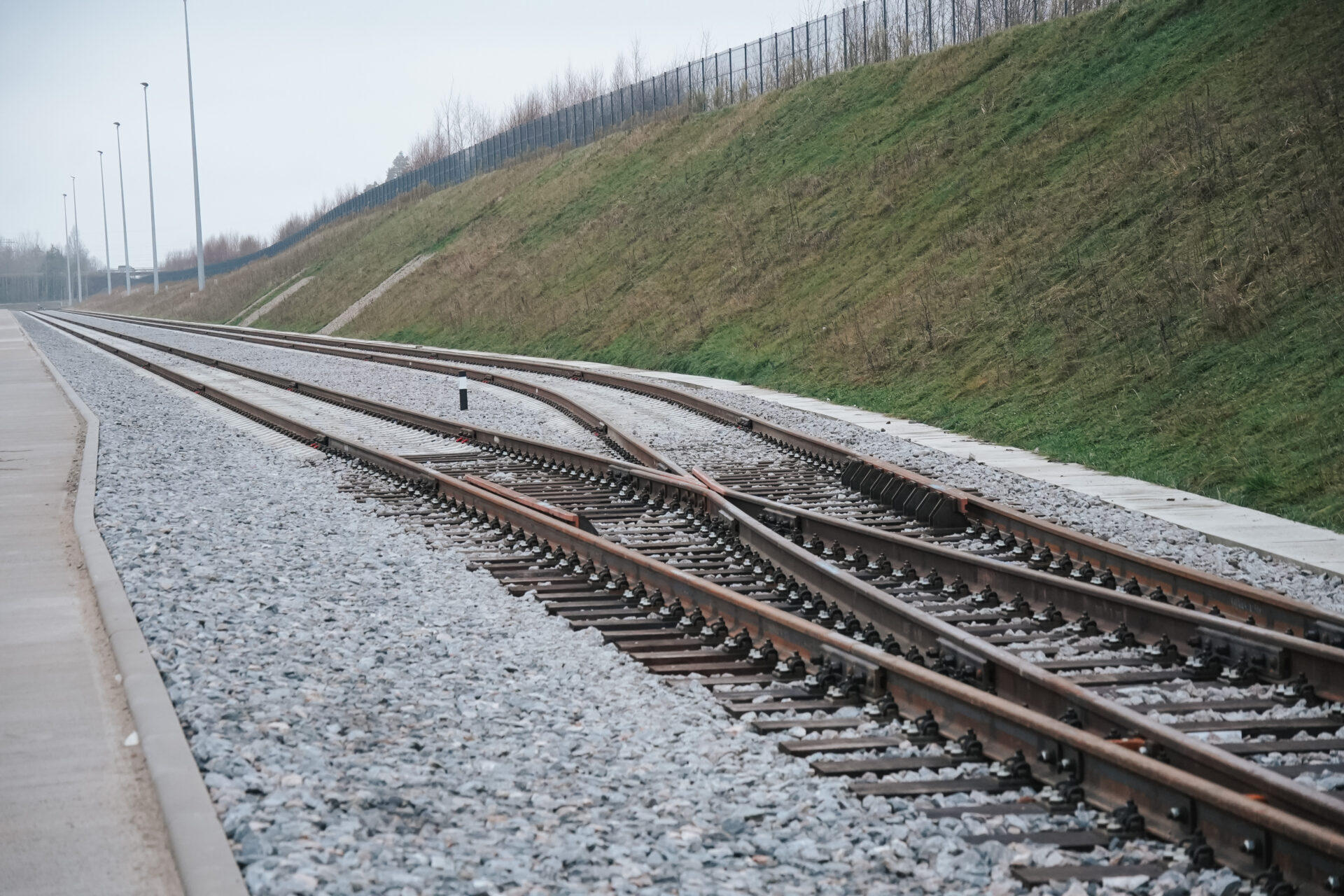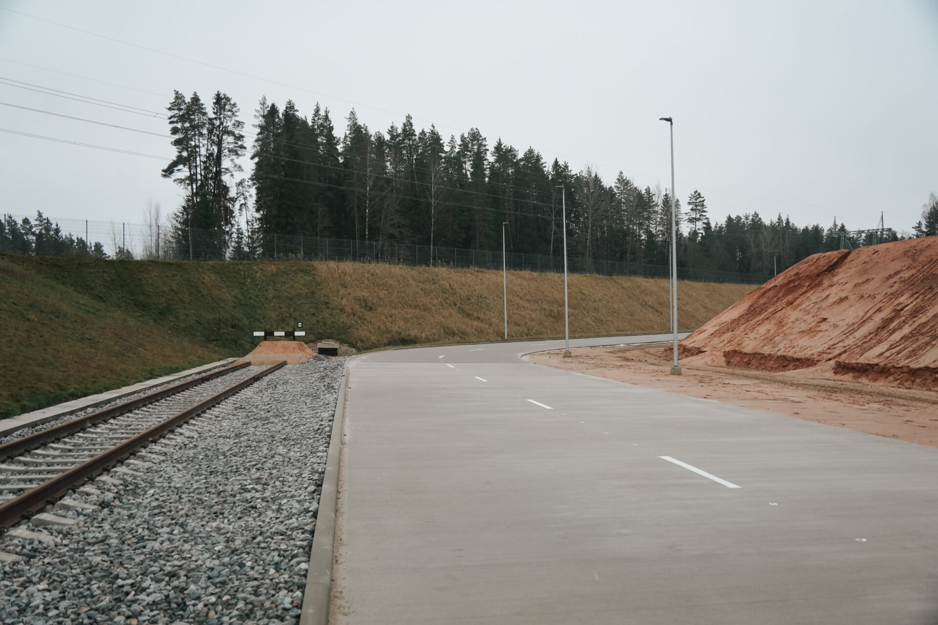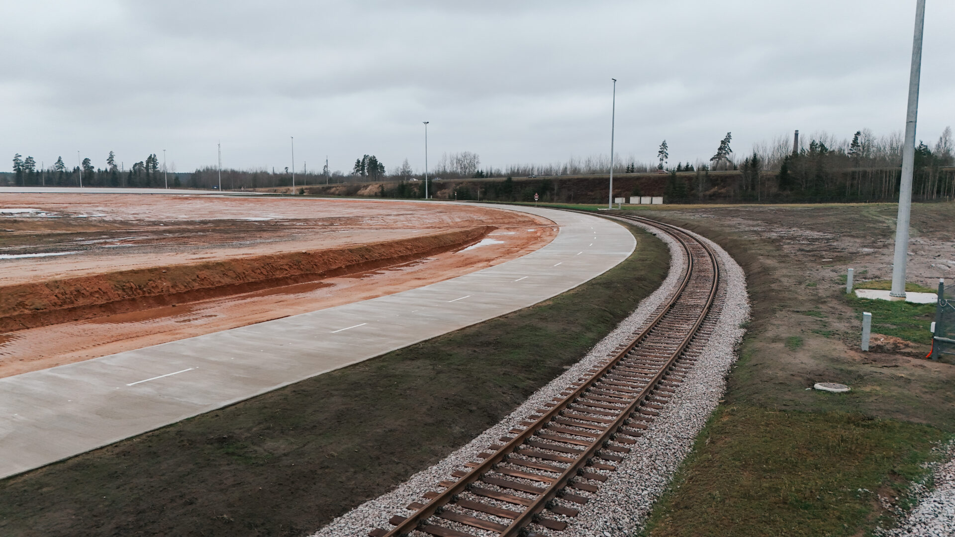 Izbūvēts iekšējās teritorijas dzelzceļš 2,275 km garumā un pievedceļš 0,94 km garumā ar pieņemšanas un nosūtīšanas ceļiem. Izvēlēts sliežu ceļa platums 1520 mm, lai tas ērti savienotos ar pārējo esošo Latvijas dzelzceļa infrastruktūru. Sliežu ceļu lietderīgais garums ir līdz 46 vagoniem (viena pusvagona garums ir 13,92 m). Ekspluatācijā pieņemts 2025. gada 25. novembrī un uzsākta sagatavošanās sertifikācijai, lai saņemtu NoBo (Notified body) sertifikātu, kas apliecinās dzelzceļa atbilstību Eiropas Savienības tehniskajām prasībām.