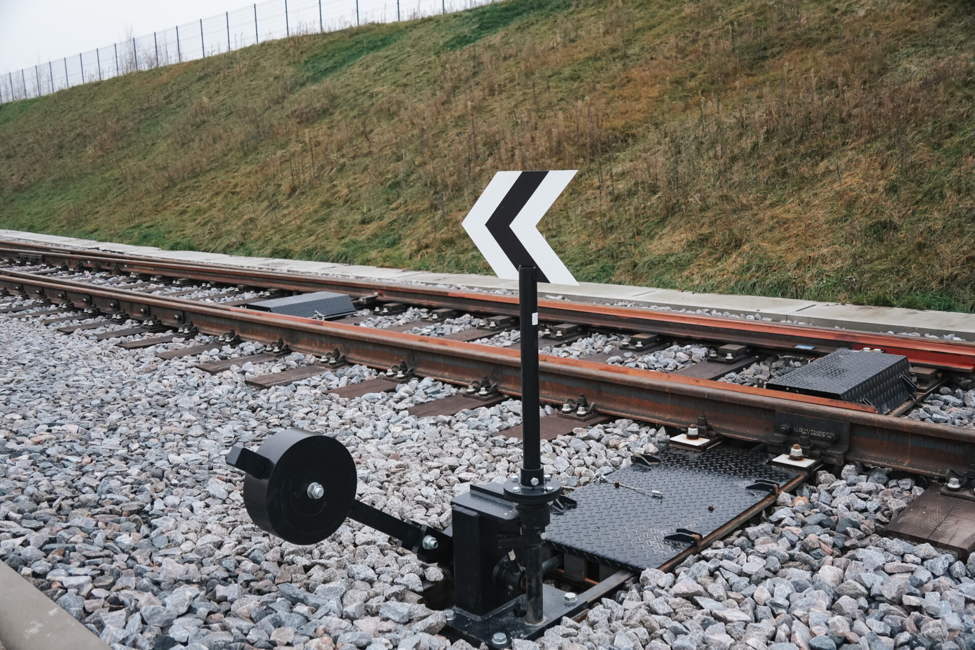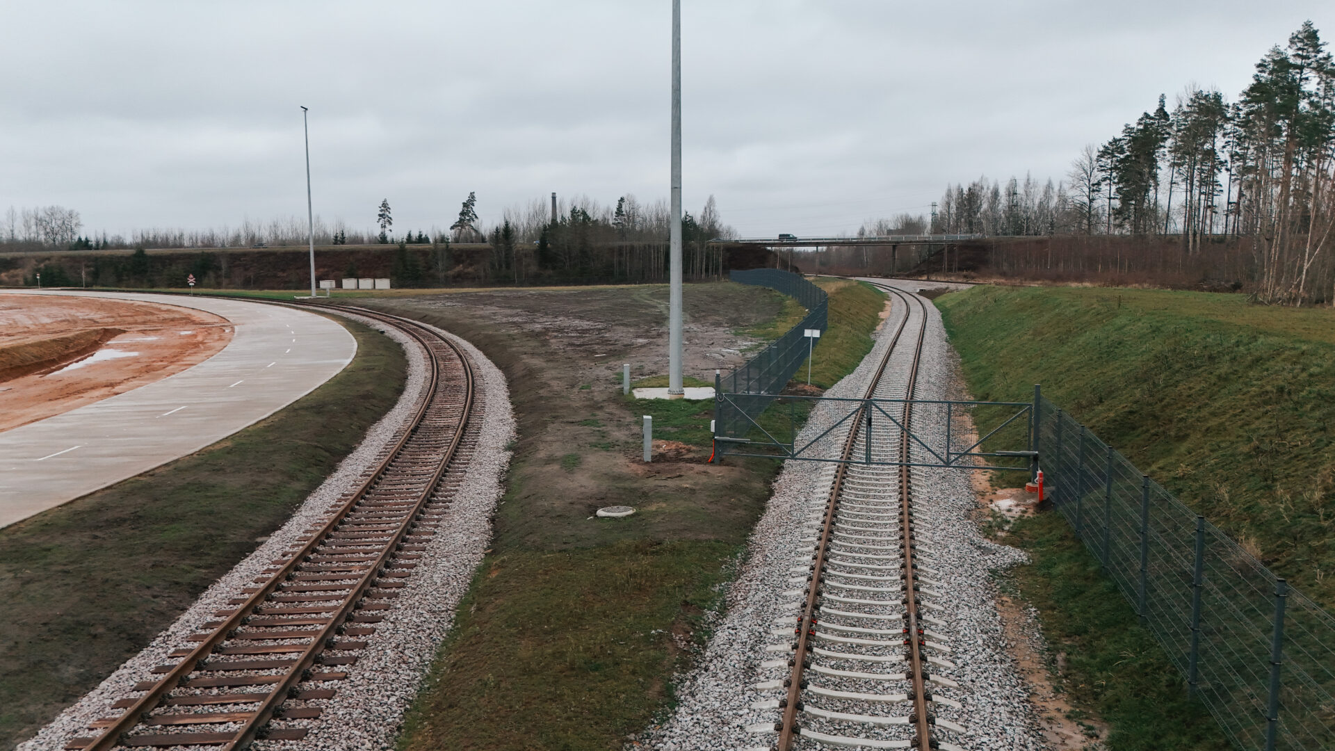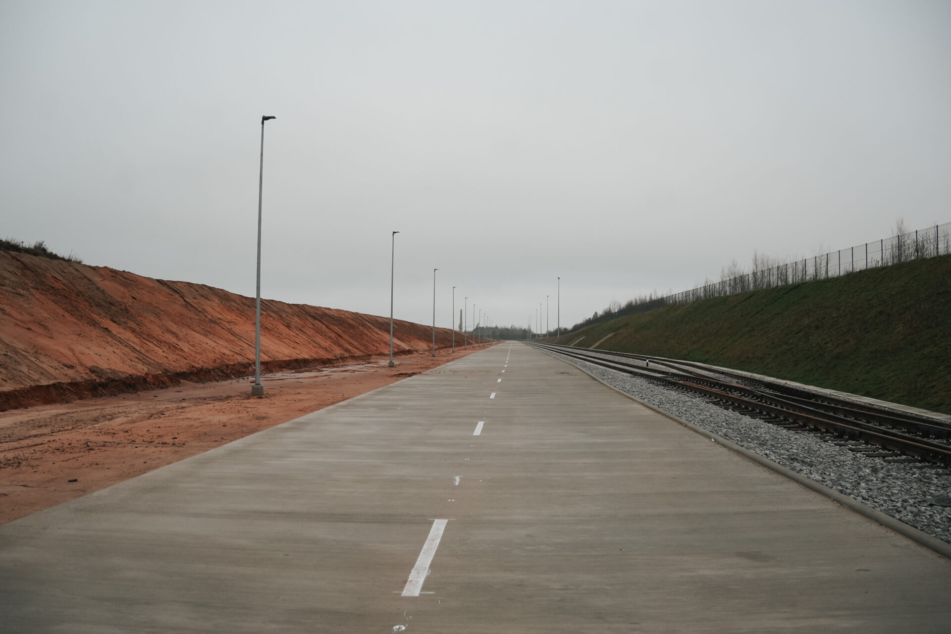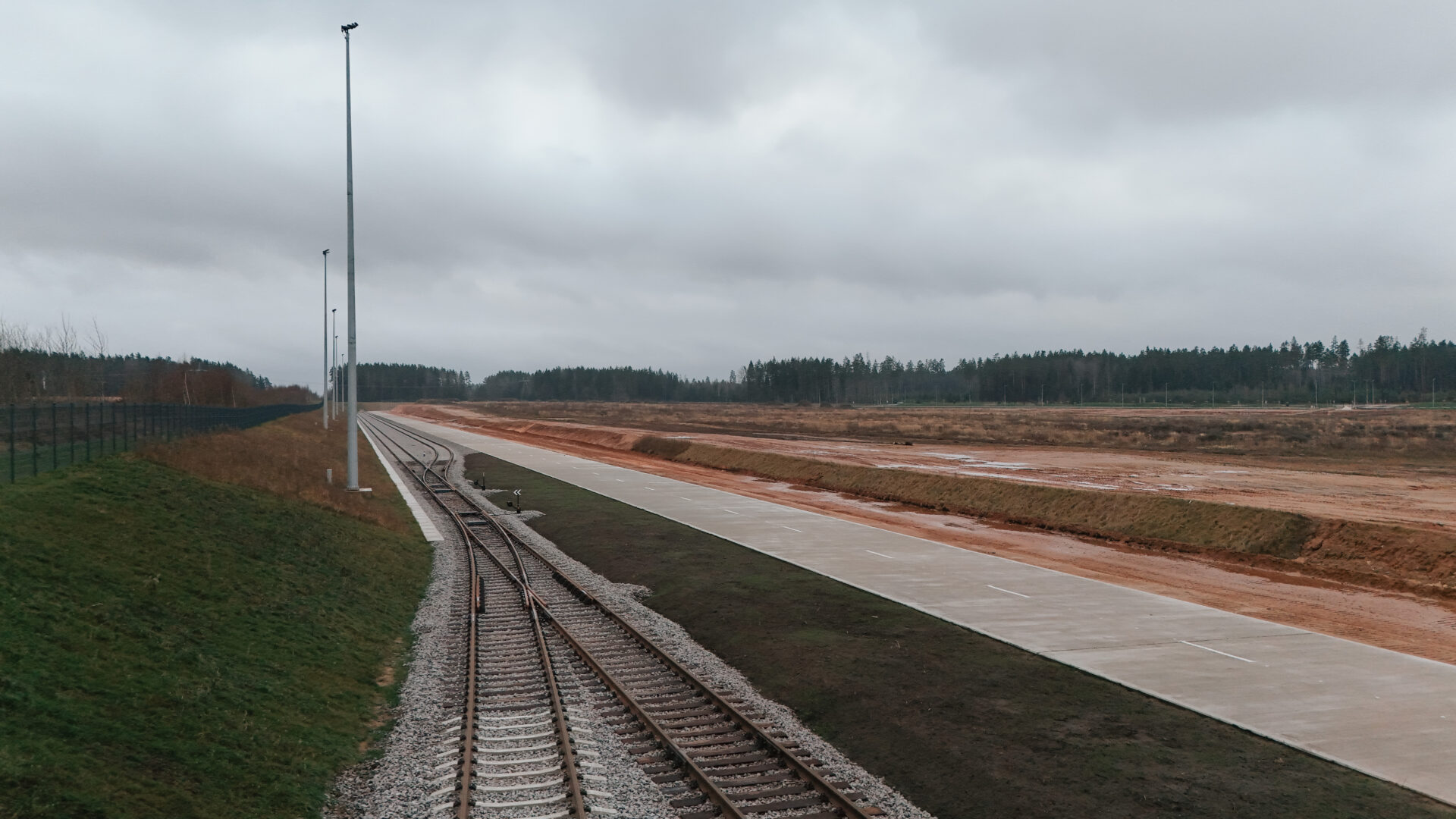 Izbūvēts iekšējās teritorijas dzelzceļš 2,275 km garumā un pievedceļš 0,94 km garumā ar pieņemšanas un nosūtīšanas ceļiem. Izvēlēts sliežu ceļa platums 1520 mm, lai tas ērti savienotos ar pārējo esošo Latvijas dzelzceļa infrastruktūru. Sliežu ceļu lietderīgais garums ir līdz 46 vagoniem (viena pusvagona garums ir 13,92 m). Ekspluatācijā pieņemts 2025. gada 25. novembrī un uzsākta sagatavošanās sertifikācijai, lai saņemtu NoBo (Notified body) sertifikātu, kas apliecinās dzelzceļa atbilstību Eiropas Savienības tehniskajām prasībām.
