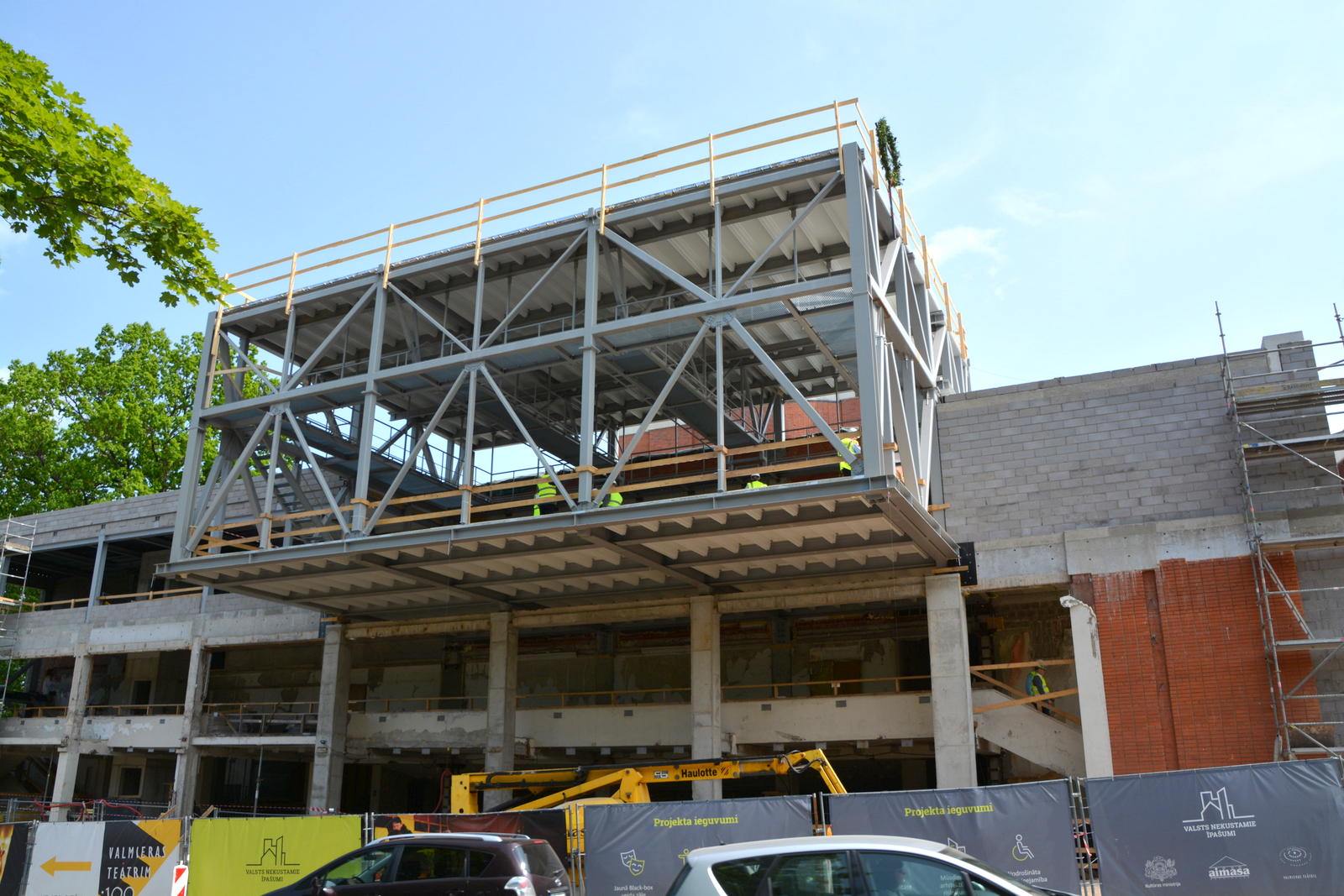 “Šis ir ļoti nozīmīgs brīdis būvniekiem, tāpēc vislielāko paldies es gribu teikti tieši SIA “AIMASA”. Šo mēnešu laikā viņi ir kļuvuši par cīņu biedriem un teātra draugiem. Tomēr esam piesardzīgi priecīgi par šī punkta sasniegšanu, jo vienīgais, par ko šodien mēs varam būt pilnīgi droši, ir tas, ka Latvijas hokeja izlase spēlēs Pasaules čempionāta pusfinālā. Jo, lai termiņā uzceltu teātri, viss vienalga ir atkarīgs no vairākām laimīgām sakritībām. Paldies Kultūras ministrijai un Finanšu ministrijai par izpratni, atrodot finanšu avotus, īpašs paldies AS “Valsts nekustamie īpašumi” valdes loceklei Jeļenai Gavrilovai, kura sniedz pleca sajūtu arī ikdienā, ne tikai svētkos. Paldies Valmieras novada pašvaldībai par būšanu ar mums vienā komandā. Un, protams, paldies Valmieras teātra kolektīvam, kas strādā šeit un tic, ka nākamā gada vasarā mēs visi šeit pulcēsimies, lai atklātu jauno teātra ēku,” saka Valmieras drāmas teātra direktore Evita Ašeradena.