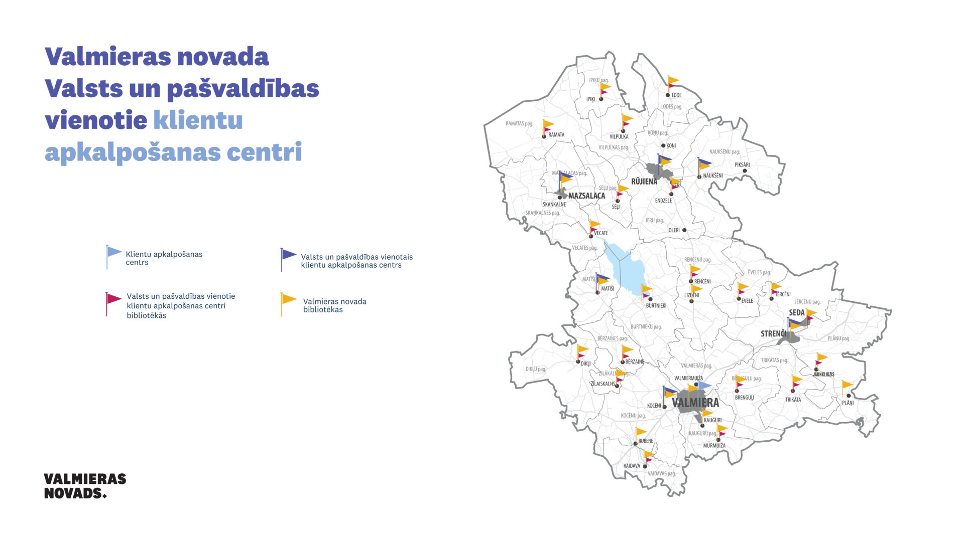 Viedās administrācijas un reģionālās attīstības ministrijai sadarbojoties ar Valmieras novada pašvaldību realizēts projekts “Pakalpojumu sniegšanas reformas atbalsts”. Pilnveidojot publisko pakalpojumu sistēmu un attīstību, 7. novembrī Valmieras novadā tika atklāti 7 jauni Valsts un pašvaldības vienotie klientu apkalpošanas centri (VPVKAC) 7 novada bibliotēkās. Šādu kontaktpunktu izveide lauku apdzīvotajās vietās ir ļoti vajadzīga, lai kopienas iedzīvotāji, apmeklējot bibliotēku un pasākumus, varētu sakārtot sev nepieciešamās lietas ar valsts iestādēm attālināti un digitāli ar zinoša speciālista palīdzību. Nozīmīgi tas ir arī tāpēc, ka attālo lauku iedzīvotāju mobilitātes iespējas aizvien samazinās.