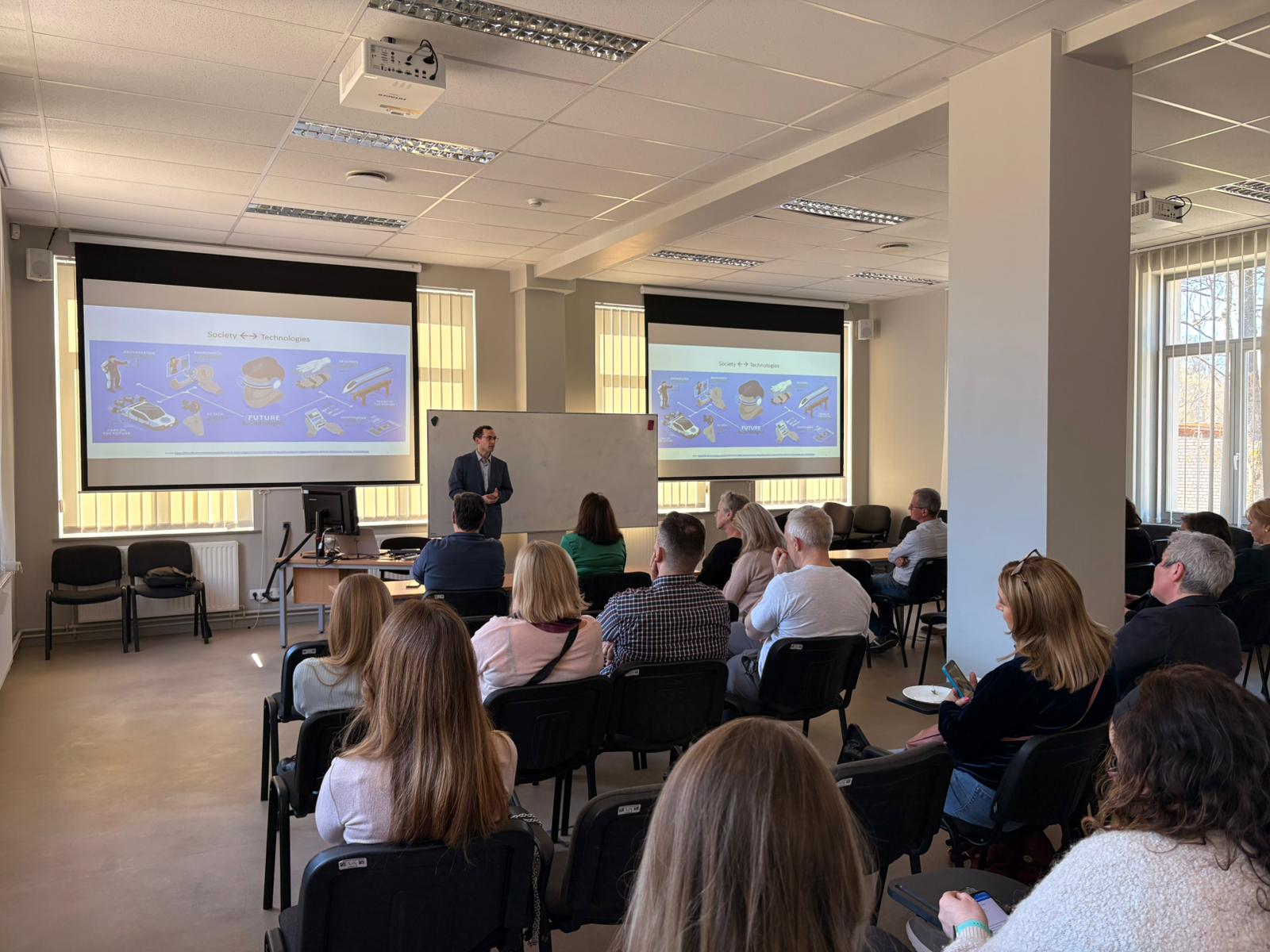 Starptautiskajiem partneriem tika prezentēta arī Vidzemes Augstskolas Virtuālās realitātes laboratorija (ViA VR‑Lab), kurai ir vairāk nekā desmit gadu pieredze virtuālās un paplašinātās realitātes risinājumu izstrādē. Laboratorijas darbs aptver plašu jomu loku – no izglītības un drošības apmācībām līdz medicīnai, tūrismam un digitālajiem dvīņiem –, vienlaikus veicinot lietišķo pētniecību un jauno speciālistu sagatavošanu reģionā.